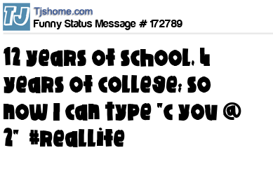 X says 12 years of school, 4 years of college; so now I can type "c you @ 2" #reallife