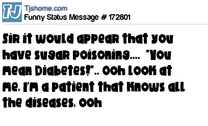 X says Sir it would appear that you have sugar poisoning.... "You mean Diabetes?".. Ooh look at me, I'm a patient that knows all the diseases, ooh
