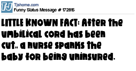 X says LITTLE KNOWN FACT: After the umbilical cord has been cut,, a nurse spanks the baby for being uninsured.