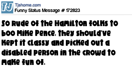 X says So rude of the Hamilton folks to boo Mike Pence, they should've kept it classy and picked out a disabled person in the crowd to make fun of.