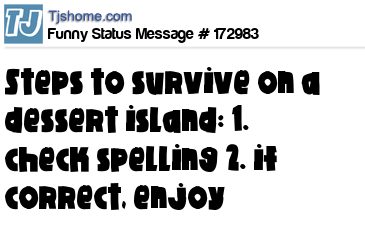 - # 163803 Steps to survive on a dessert island... 1. check spelling... 2. if correct, enjoy