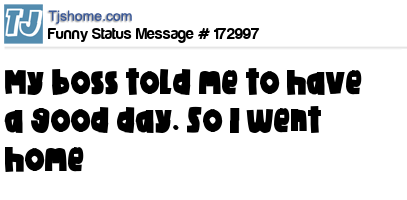 - # 140735 My boss told me to have a good day so I went home. He must really want me to have a good time because he called and said don't come in tomorrow.
