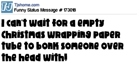 X says I can't wait for a empty Christmas wrapping paper tube to bonk someone over the head with!