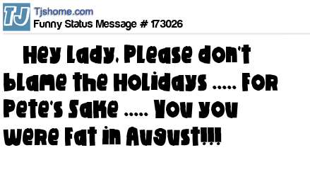 X says Hey Lady, Please don't blame the Holidays ..... For Pete's Sake ..... You you were Fat in August!!!