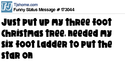 X says Just put up my three foot Christmas tree, needed my six foot ladder to put the star on