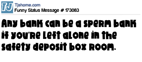 X says Any bank can be a sperm bank if you're left alone in the safety deposit box room.