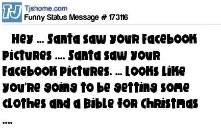 - # 118923 Santa saw your Facebook pictures. …You're getting clothes and a Bible for Christmas