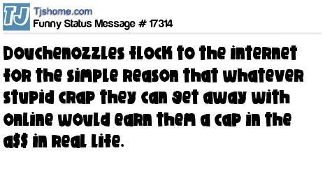 X Douchenozzles flock to the internet for the simple reason that whatever stupid crap they can get away with online would earn them a cap in the a$$ in real life.