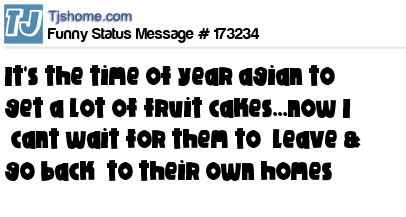 X says it's the time of year agian to get a lot of fruit cakes...now I cant wait for them to leave & go back to their own homes