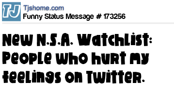 X says New N.S.A. Watchlist: People who hurt my feelings on Twitter.