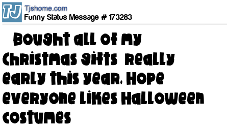 X says Bought all of my Christmas gifts really early this year, Hope everyone likes Halloween costumes