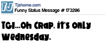 - # 68626 Bi-polar Wednesday - that day where you fluctuate between, "WooHoo, the week is half over" and "Oh crap, the week is only half over.