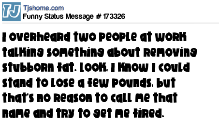 X I overheard two people at work talking something about removing stubborn fat. Look, I know I could stand to lose a few pounds, but that's no reason to call me that name and try to get me fired.