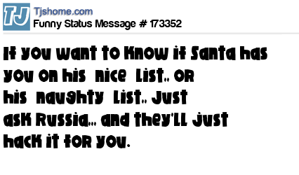 X says If you want to know if Santa has you on his “nice” list,, or his “naughty” list,, Just ask Russia,,, and they'll just hack it for you.
