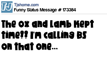 X The ox and lamb kept time?? I'm calling BS on that one...