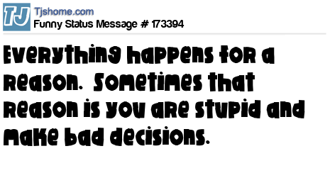 - # 100051 Everything happens for a reason. Getting stupid and making poor decisions are the most common reasons.