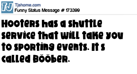 - # 171124 Hooters has a shuttle service that will take you to sporting events. It’s called Boober.
