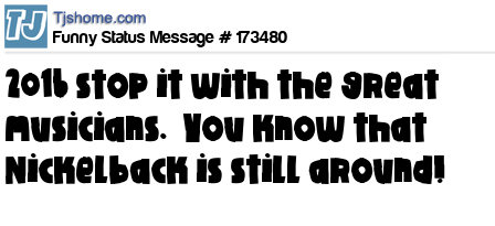X says 2016 stop it with the great musicians. You know that Nickelback is still around!