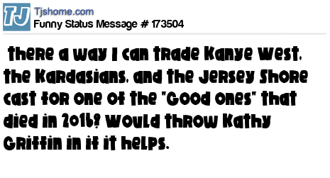 X says there a way I can trade Kanye West, the Kardasians, and the Jersey Shore cast for one of the "Good ones" that died in 2016? Would throw Kathy Griffin in if it helps.
