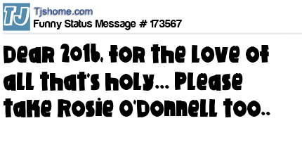X says Dear 2016, for the love of all that's holy... Please take Rosie O'Donnell too..