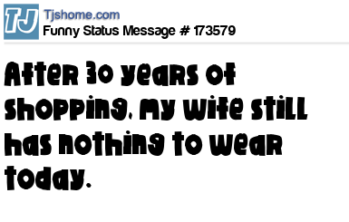 - # 119098 After 30 years of shopping, my wife still has nothing to wear.