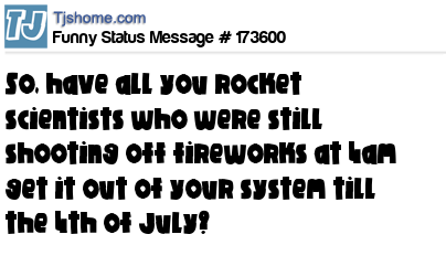 X So, have all you rocket scientists who were still shooting off fireworks at 4am get it out of your system till the 4th of July?