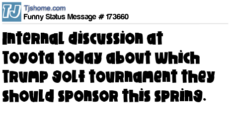 X says Internal discussion at Toyota today about which Trump golf tournament they should sponsor this spring.