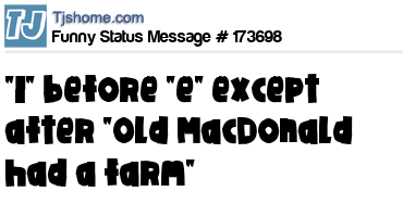 X says "I" before "e" except after "Old MacDonald had a farm"