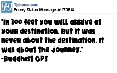 - # 143465 "In 300 feet you will arrive at your destination. But it was never about the destination. You know that now." - Buddhist GPS