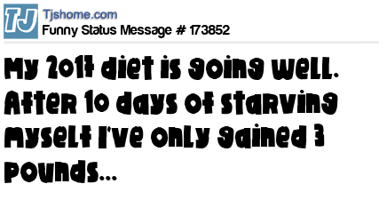 X My 2017 diet is going well. After 10 days of starving myself I've only gained 3 pounds...