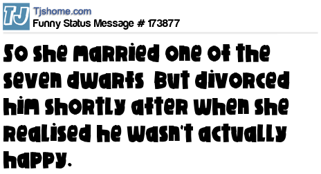 X says So she married one of the seven dwarfs But divorced him shortly after when she realised he wasn't actually happy.