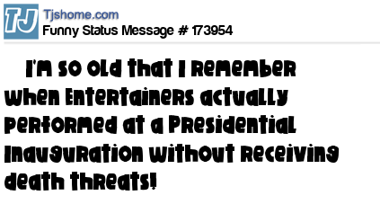X says I'm so old that I remember when Entertainers actually performed at a Presidential Inauguration without receiving death threats!