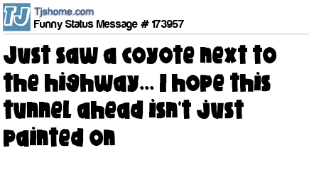 - # 106860 I always clench up before I drive into a tunnel because I'm afraid Wile E. Coyote might have just drawn it on there.