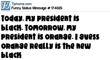 X says Today, my president is black. Tomorrow, my president is orange. I guess orange really is the new black