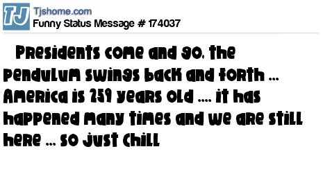 X says Presidents come and go, the pendulum swings back and forth ... America is 259 years old .... it has happened many times and we are still here ... so just Chill