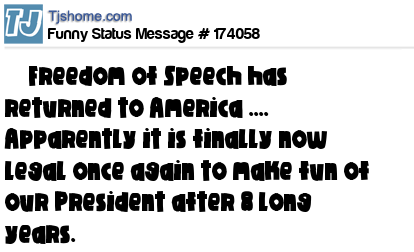 X says Freedom of Speech has returned to America .... Apparently it is finally now legal once again to make fun of our President after 8 long years.