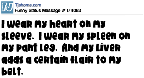 X says I wear my heart on my sleeve. I wear my spleen on my pant leg. And my liver adds a certain flair to my belt.