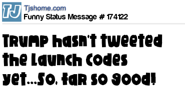 X says Trump hasn't tweeted the Launch Codes yet...So, far so good!