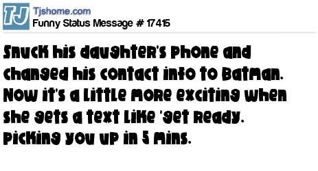 X snuck his daughter's phone and changed his contact info to Batman. Now it's a little more exciting when she gets a text like 'get ready. picking you up in 5 mins.
