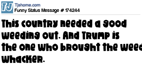 X This country needed a good weeding out. And Trump is the one who brought the weed whacker.