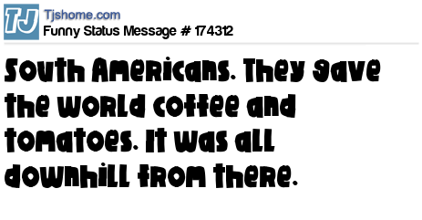 X South Americans. They gave the world coffee and tomatoes. It was all downhill from there.