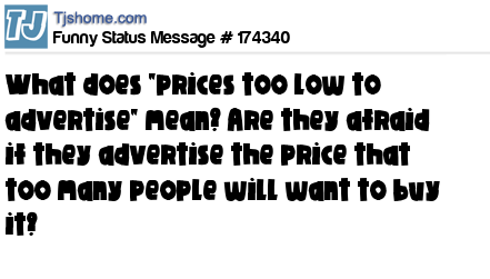 X says What does "prices too low to advertise" mean? Are they afraid if they advertise the price that too many people will want to buy it?
