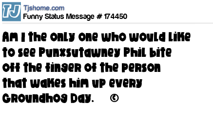 - # 207864 Am I the only one who would like to see Punxsutawney Phil bite the finger of the person that wakes him up every Groundhog Day?