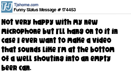 X says Not very happy with my new microphone but I'll hang on to it in case I ever want to make a video that sounds like I'm at the bottom of a well shouting into an empty beer can.