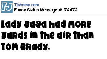X says Lady gaga had more yards in the air than Tom Brady.