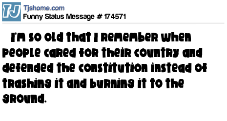X says I'm so old that I remember when people cared for their country and defended the constitution instead of trashing it and burning it to the ground.