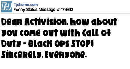X Dear Activision, how about you come out with Call of Duty - Black Ops STOP! Sincerely, Everyone.
