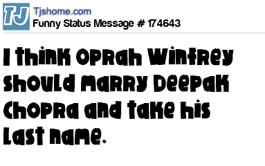 - # 145104 I think Oprah should marry Deepak Choprah and take his last name.