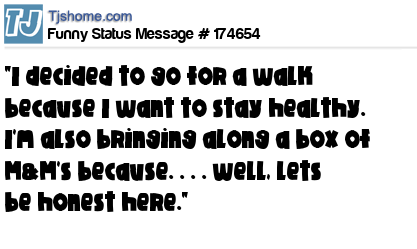 X is "I decided to go for a walk because I want to stay healthy. I'm also bringing along a box of M&M's because. . . . well, lets be honest here."