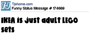 - # 168386 If IKEA and LEGO combined forces our children could make our furniture.